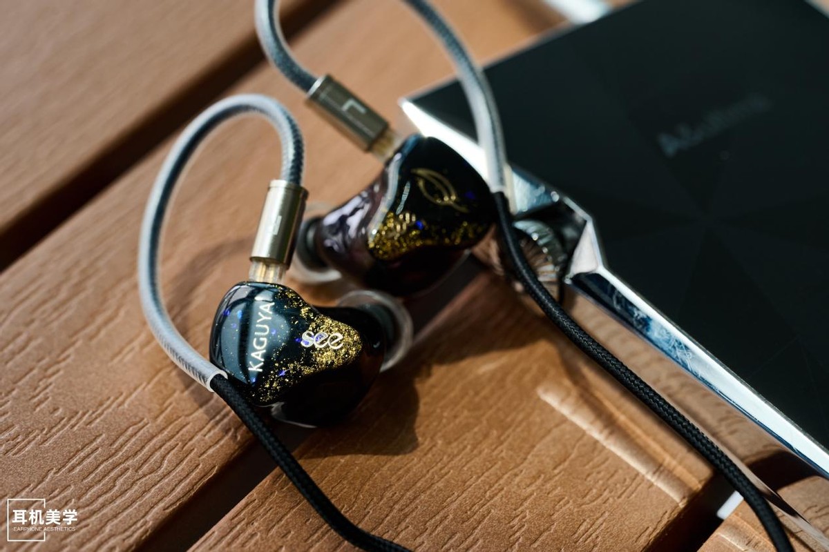 作为旗舰耳机,辉夜二代的外观并没有一味强调二次元风格。面板以黑色为底,加入云母、金箔和金属装饰。黑金交织犹如夜空中的点点星光,视觉上大气稳重,也呼应了“辉夜”的命名。这种偏沉稳的风格,在SeeAudio以往的产品中并不常见。当然对于喜欢二次元的用户,SeeAudio依旧提供了高质量的artwork工艺,支持个性化的面板定制设计。