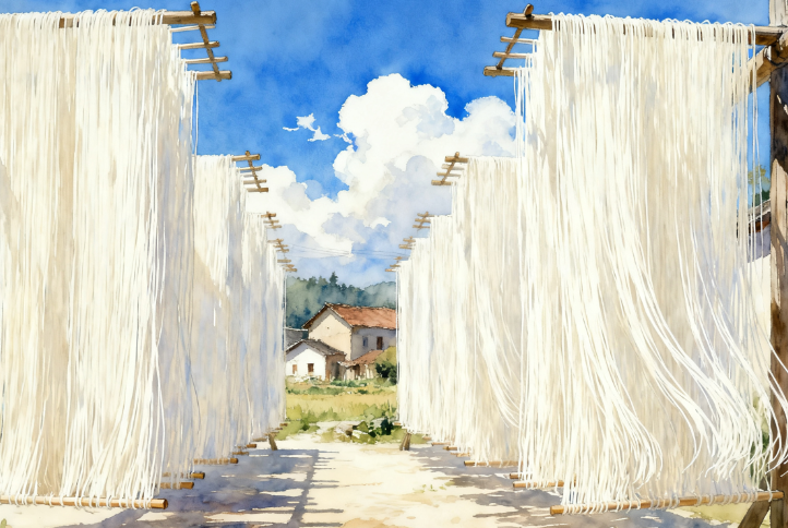 清晨的晋北农家,总能看见屋檐下挂着的 “银丝”—— 一绺绺细如发丝的挂面,在微风中轻轻晃动,阳光洒在上面,泛着淡淡的麦光。在山西,挂面不是稀罕物,却是家家户户离不开的吃食,它藏着老辈人的手艺,也裹着寻常日子里的温暖滋味。