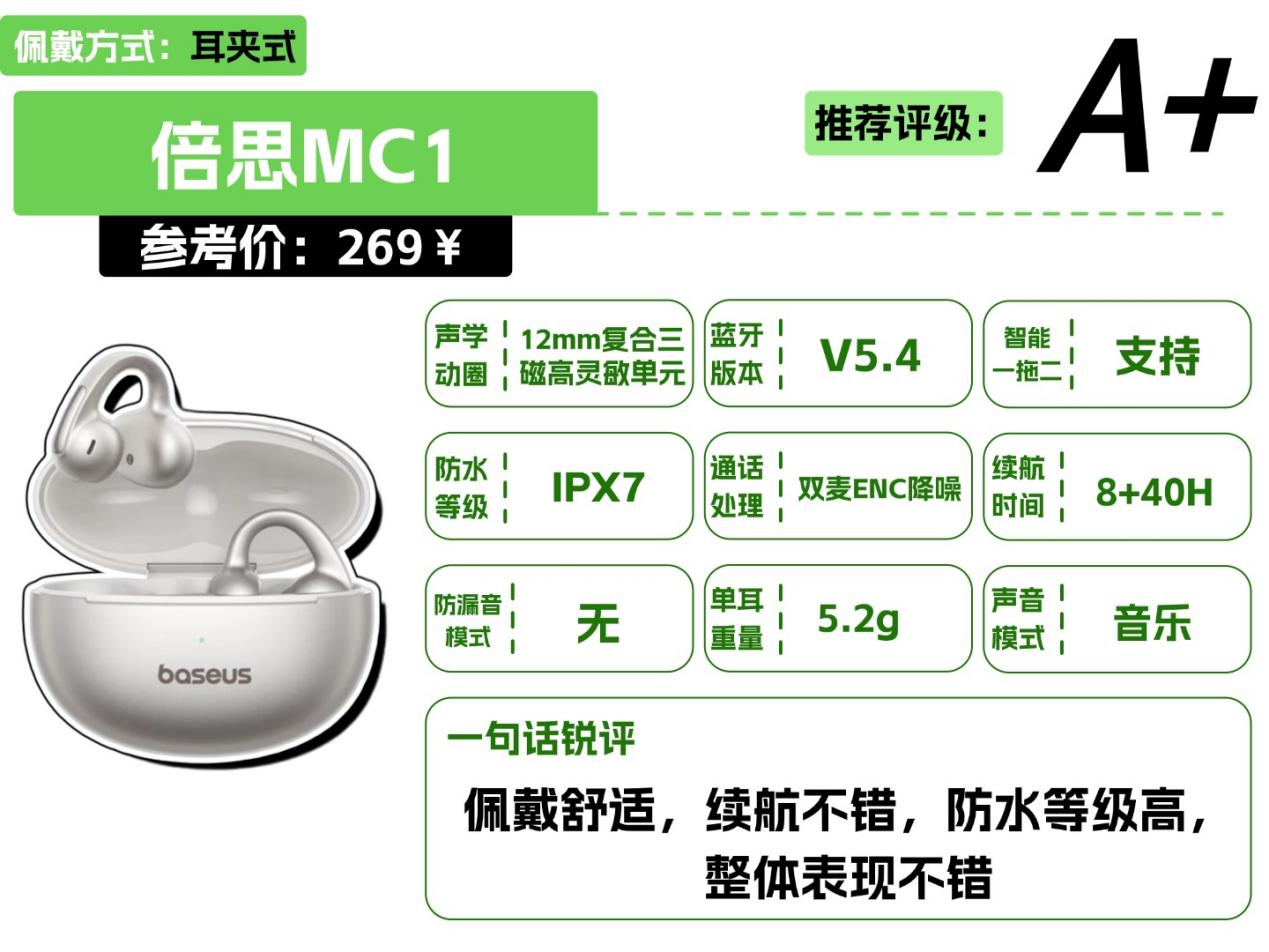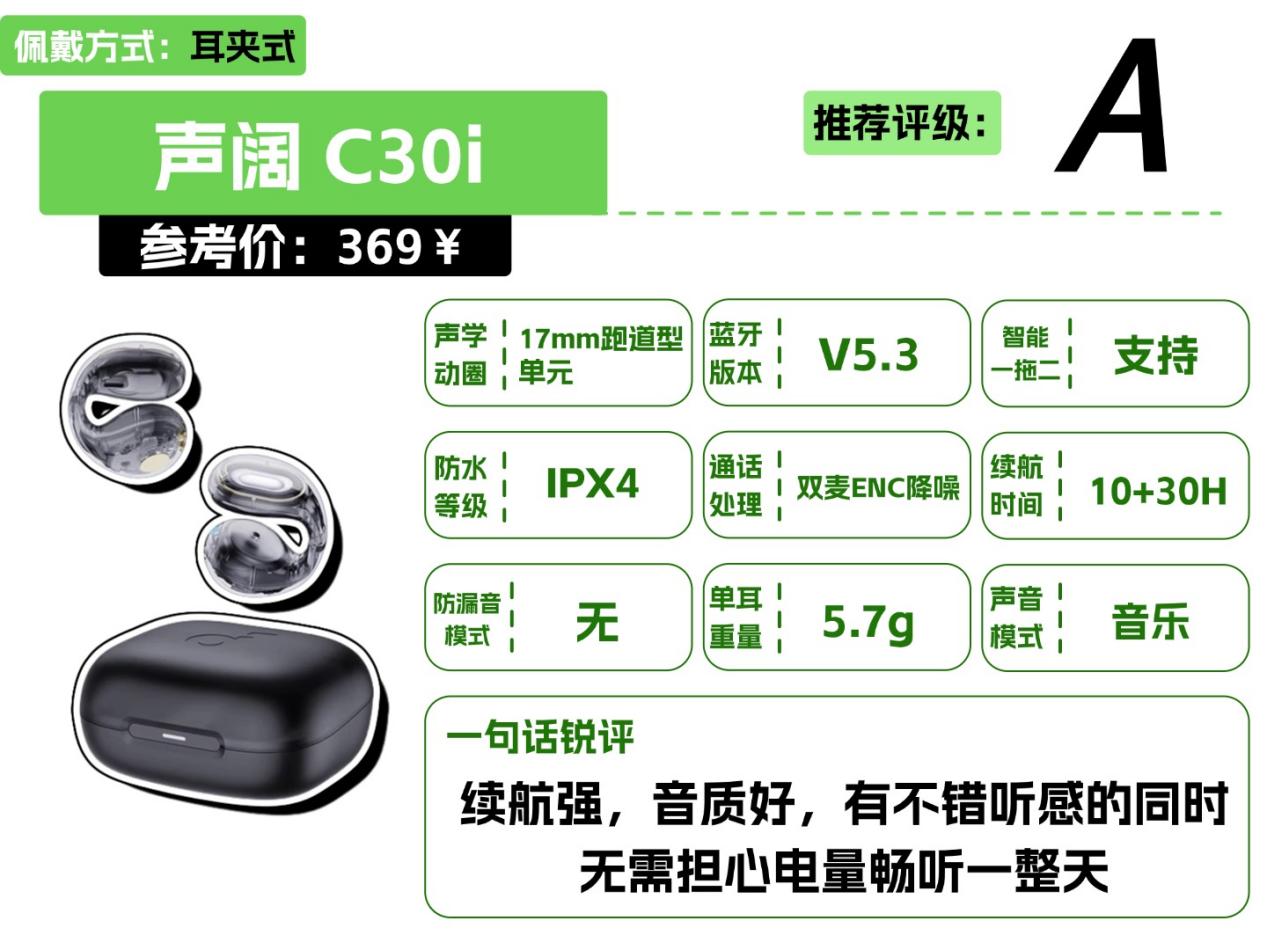 售价:399 元推荐程度:♥♥♥♥推荐理由:音质、佩戴稳定性和日常实用性上平衡得不错,适合大多数日常场景。