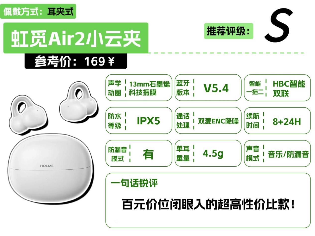 高性价比耳夹式耳机推荐!虹觅HOLME小云夹