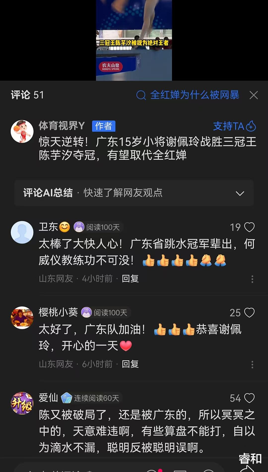 在社交媒体上,“谢佩铃碾压陈芋汐”、“全红婵师妹创历史”等博人眼球的标题此起彼伏,再配上各种对比的数据,仿佛一切已经坐实了比赛结果。