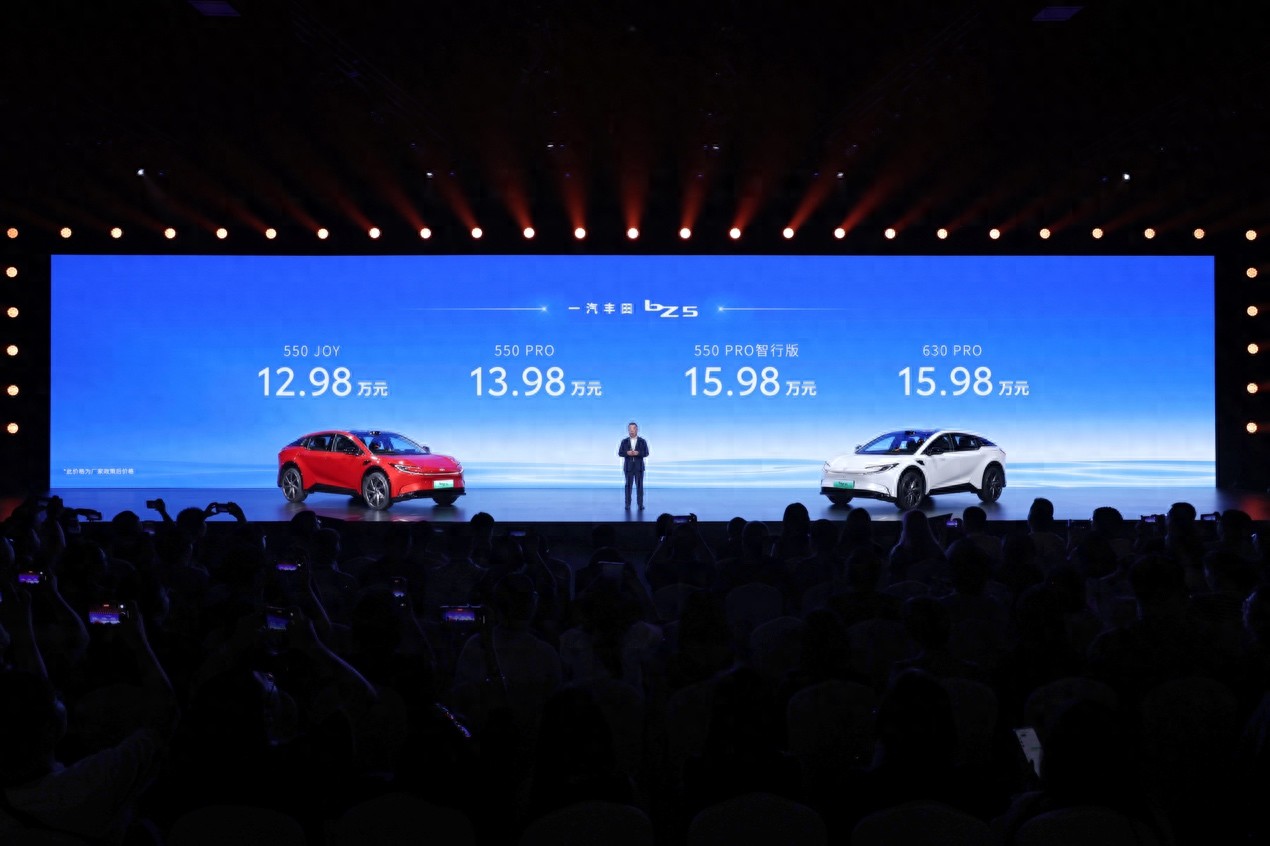 6月10日,定位为“丰田超感时空舱”的一汽丰田bZ5正式上市。新车首推550 JOY、550 PRO、550 PRO智行版、630 PRO版共计4个版本,售价分别为12.98万元、13.98万元、15.98万元、15.98万元。