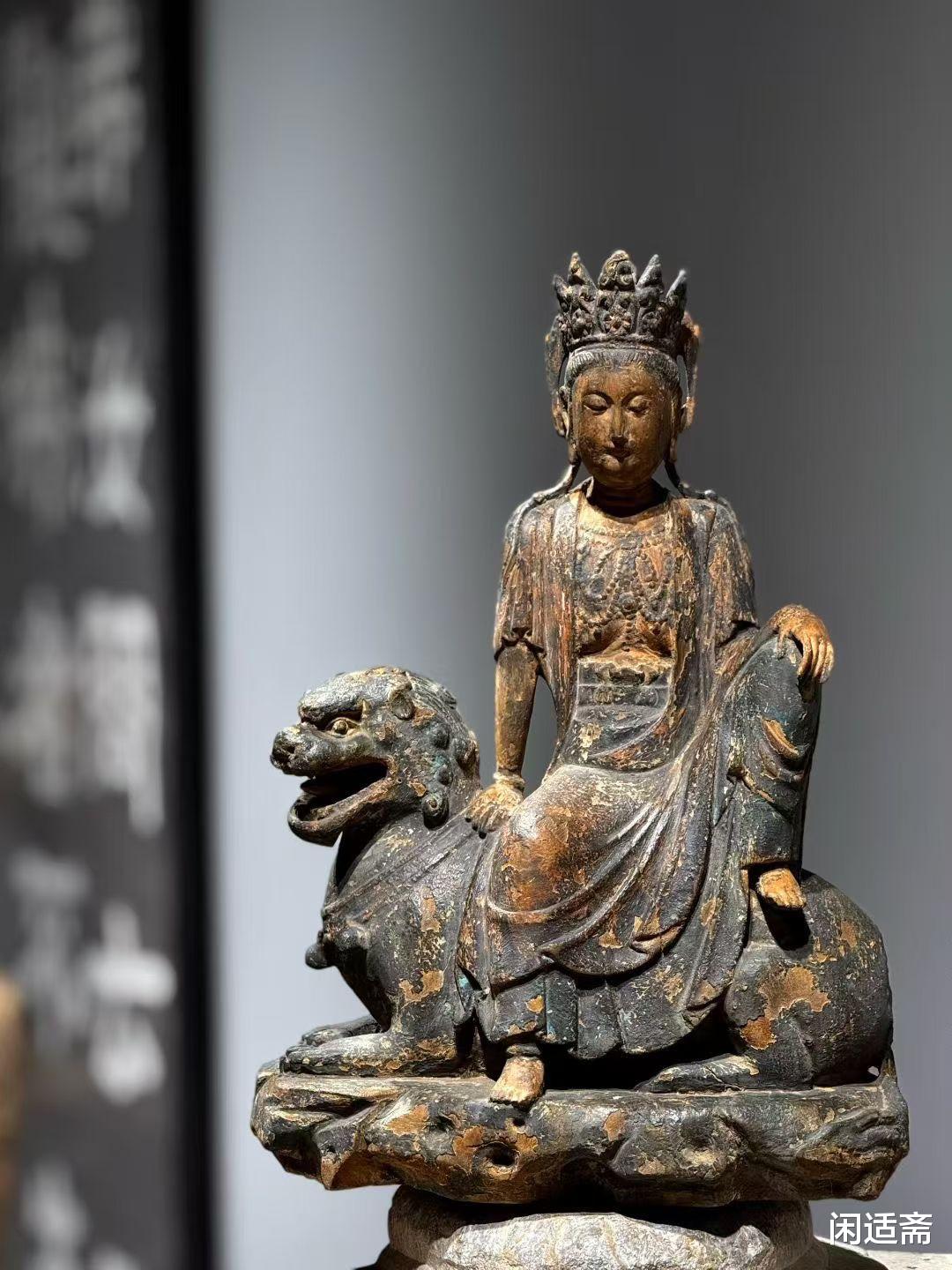 在佛教文化中,文殊菩萨作为 “四大菩萨” 之一,以智慧、慈悲与清凉著称,被尊为 “大智文殊师利菩萨”,象征着超凡的智慧与通透的觉悟,历来是信众与文人心中 “破迷开悟” 的精神象征。其形象自佛教传入中国后,历经各朝代艺术风格的浸润,在宋代达到了 “形神兼备、简雅空灵” 的艺术高度 —— 宋代文人审美追求 “平淡天真”,反映在造像上,便是褪去了唐代的雄浑壮丽,转向线条简练、神态安详的内敛之美,宋韵文殊造像也因此成为古典佛教艺术中 “以形载道” 的典范。