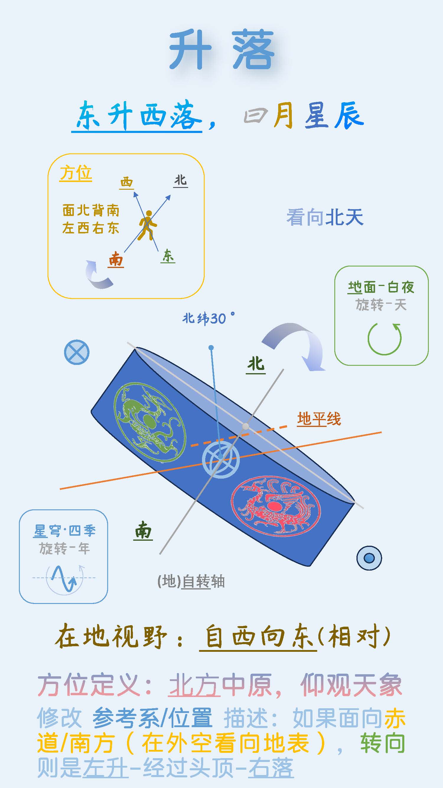 修改 参考系/位置 描述:如果面向赤道/南方(在外空看向地表),转向则是左升-经过头顶-右落