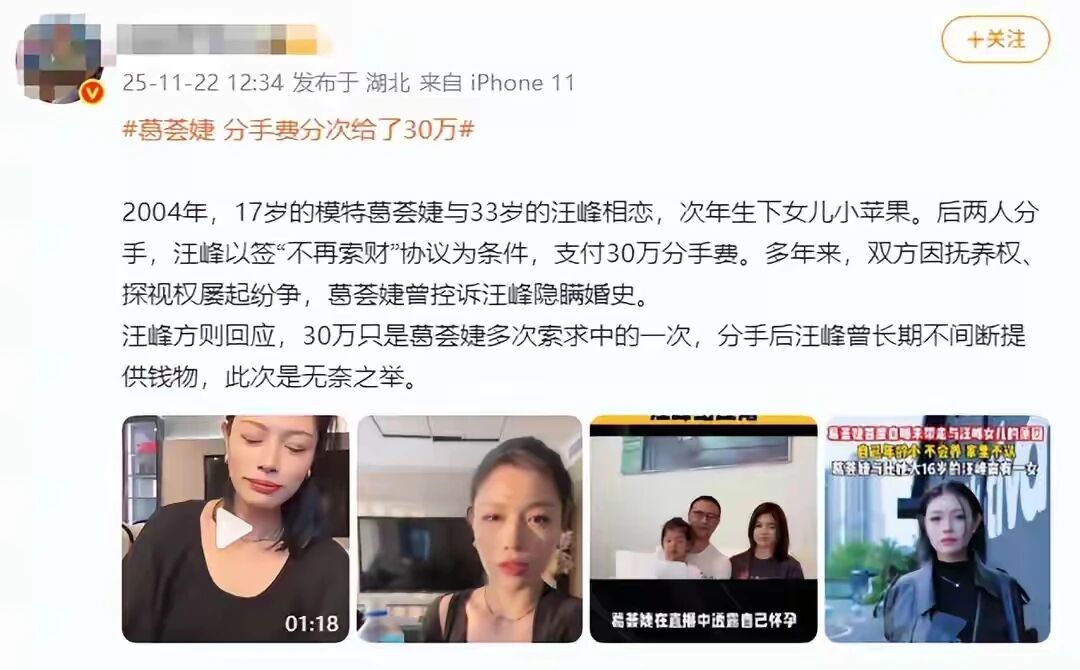 更让葛荟婕寒心的是,2010年汪峰给了她30万分手费,却逼着她签保证书,让她放弃女儿的抚养权。这事儿就像一根刺,扎在她心里十几年,拔不掉也咽不下。