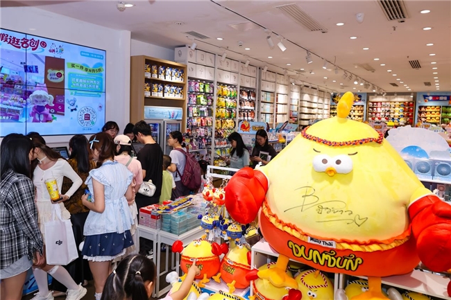 活动现场,“泰拳墩DUN鸡”快闪店展示了多款联名周边产品,名创优品MINISO还在广州多家门店设立主题购买专区。这种线上线下联动的营销模式,为消费者提供了沉浸式的兴趣消费体验,让文化IP的价值得到最大化释放。