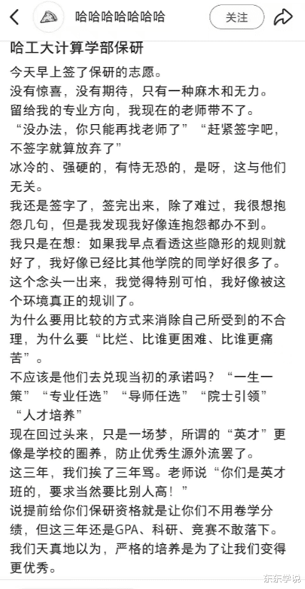 一位哈尔滨985大四学生在网上以“今天早上了签了保研志愿”为题,写了他的本科三年学习经历与保研过程!