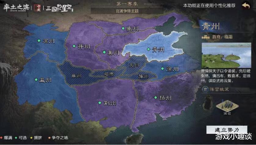 联动主题服将上演全新“官渡争锋”玩法,带领玩家亲身体验那场改变了北方格局的惊世之战。玩家可以任选一州起兵,不同州会提供不同的初始加成,例如在荆州起兵会提升资源产量,在扬州起兵会提高税收加成等等。