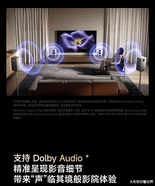 联网时XiaomiSound2Max支持双芯无线组网,两个Wi-Fi芯片分别承担音频传输与组网通信,既保障音质无损传输,还能通过空间音频校准自动优化音响效果