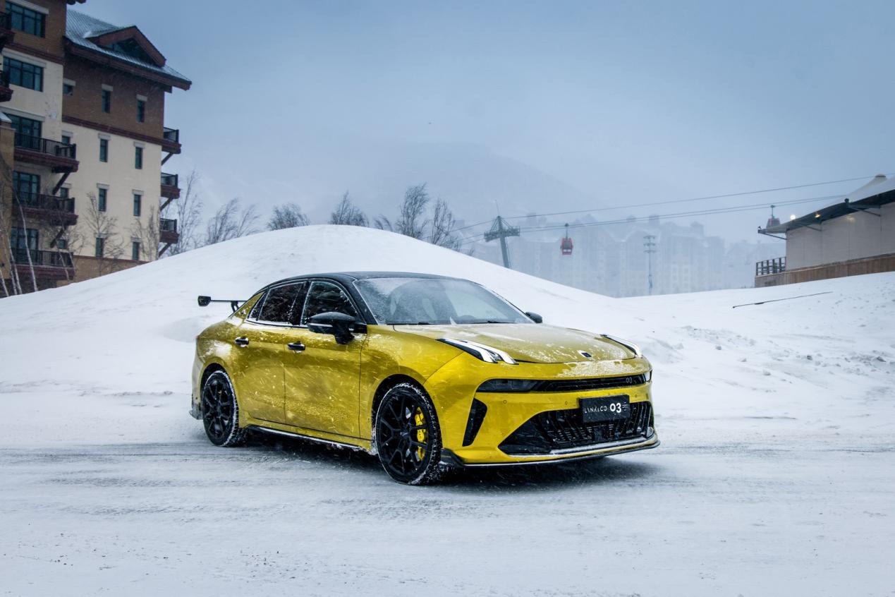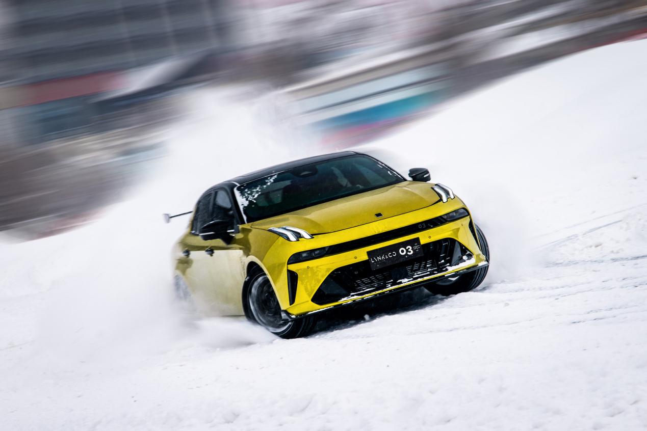 领克03家族不仅在视觉上与冰雪场景完美融合,更在性能上展现了其“冬日战神”的硬核实力。新领克03+性能进阶版搭载的2.0TD T6双增压发动机,拥有309Ps的最大马力与420N·m的峰值扭矩,百公里加速仅需5.41秒,即便在低温环境下,也能确保动力响应的迅速与敏捷。其配备的第六代博格华纳智能四驱系统,可智能实现50:50的黄金扭矩分配,大幅提升了冰雪路面的抓地力,让漂移动作更加精准可控。而新领克03+Racing版则在此基础上更进一步,不仅延续了强大的动力输出与四驱配置,更搭载了支持十段可调的Bilstein高性能减震器,可根据雪地路况实时调整,搭配优化空气动力学的碳纤维宽体套件,高速行驶时车身稳定性显著提升,成为冰雪路面的操控标杆。
