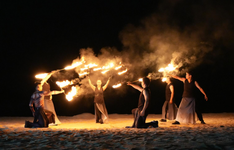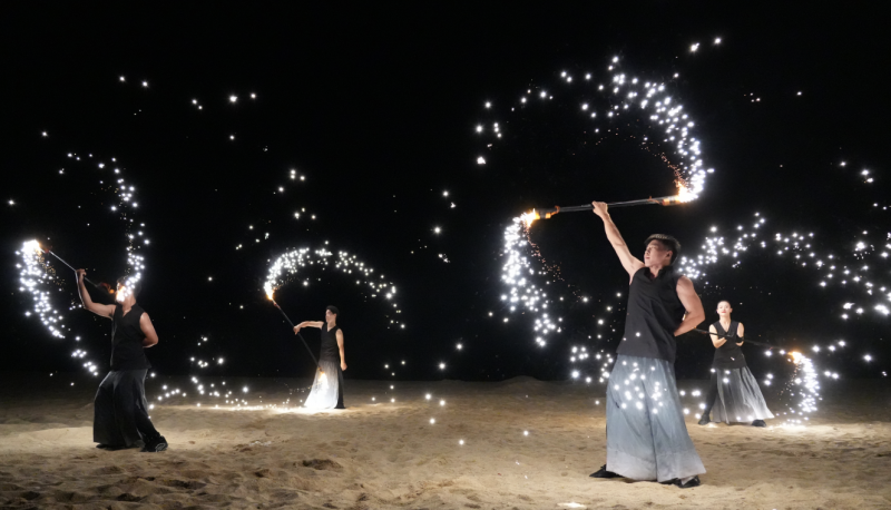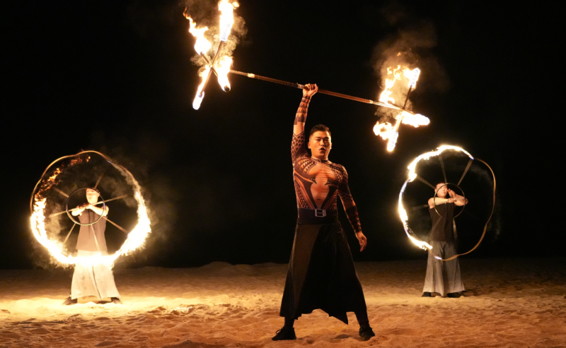 更令人期待的是“空中飞人焰火秀”——专业特技演员自高空跃下,身拖焰火划破夜空,形成海天一色的绚丽画面;而传统民俗“烧火塔”与创新编排的“水飞焰火扇”将焰火、水幕与舞蹈相结合,将整个火焰节推向视听高潮。在落幕瞬间,海面引爆冷焰火瀑布,为游客留下难忘的记忆,让游客在热烈的氛围中尽享夜间狂欢。(所有火焰表演均在专业团队指导下,于指定安全区域内进行,现场设有安全设施与工作人员引导,在安全距离内有序观看)