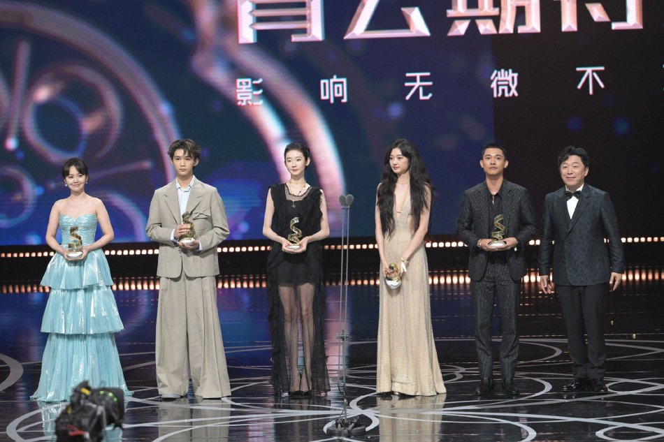 荣梓杉、孙千、张佳宁、张艺凡、张宥浩获得“年度青云期待演员”荣誉,演员黄渤见证荣誉时刻。