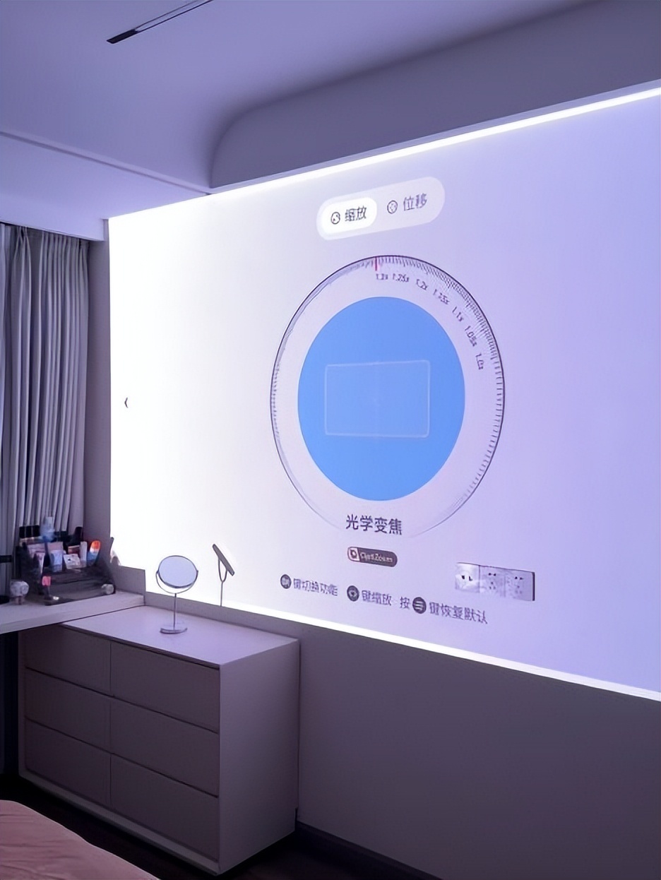 特色功能则建议优先选带有云台 + 自动对焦 + 梯形校正的机型,租房场景往往无法进行固定安装,这类功能可实现无支架投放天花板,且侧投时能自动完成画面矫正,无需手动反复调试,大幅提升使用便捷性,适配租房内多样的投放场景,如果有光学变焦功能更好,无需挪动投影仪,仅靠遥控器就能实现画面的放大缩小。