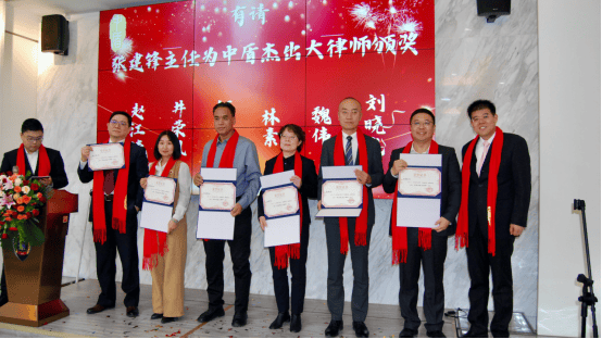 最后表彰的是“中盾优秀律师”,付建忠、 陈利厚、张增辉、李钦祥、夏翔、刘旭(北京)、张莉、魏晓虎、张玉娟、盛兰、徐风章、康小红、郭敏、黄华、白亮、杨永伟、杨斌、陈静霞、李金慧勇、林红共二十名律师上台接受表彰并发表获奖感言。本次年会评选的“中盾优秀合伙人”“中盾优秀律师”共计三十余人,覆盖了从资深专家到业务骨干,从管理精英到后起之秀的完整人才梯队。