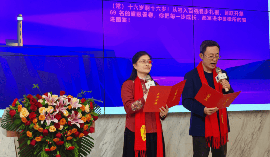 康小红、常成律师的诗歌朗诵可以说是中盾律所年会的保留节目,本次两位合作的《点赞中盾》,以饱满的情感讴歌了律所初心与成就,声震屋宇,情动于衷,赢得台下阵阵热烈掌声。
