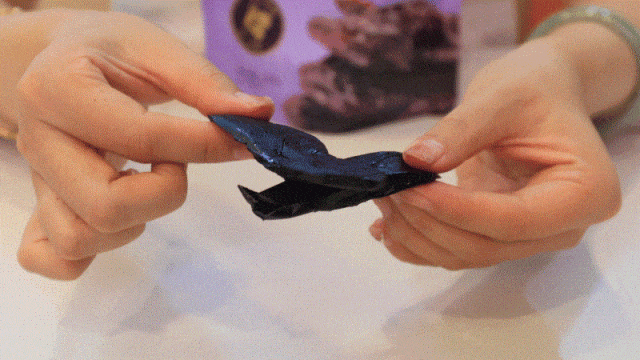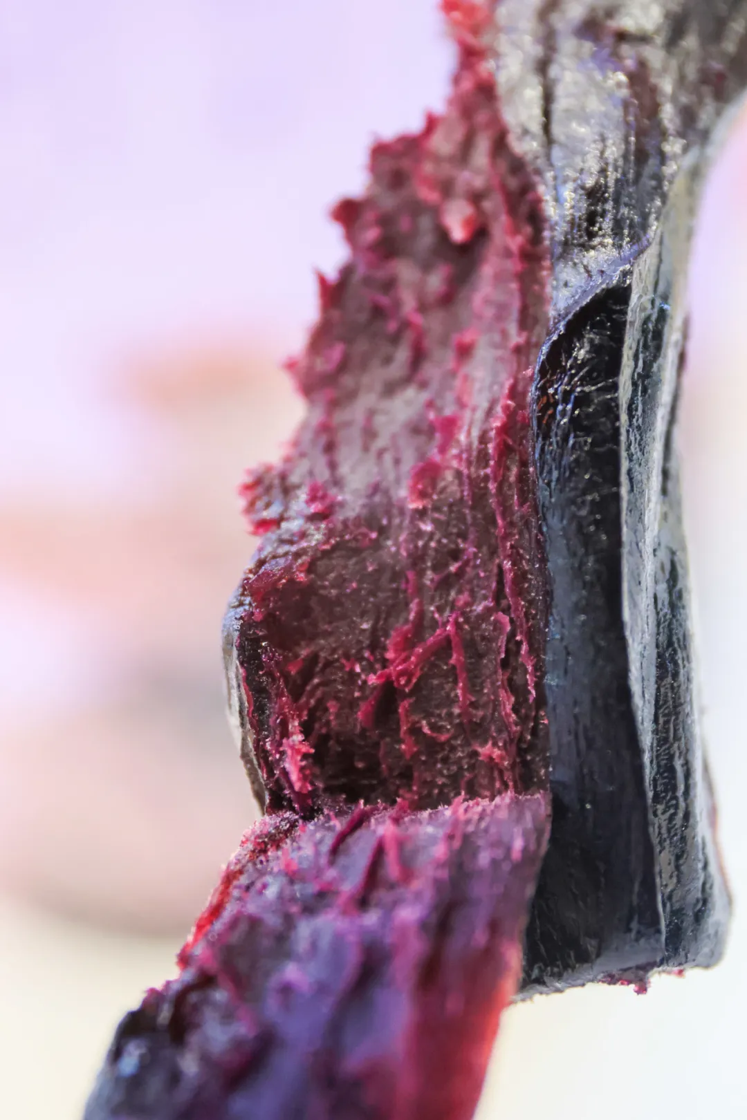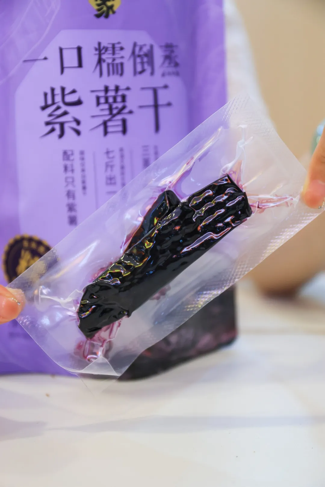 紫薯干是自然的深紫色,没有加糖,甜味全靠紫薯本身。采用三蒸三烤,软糯香甜又有嚼劲,每一块厚度均匀,水分控制得刚好,不会干硬噎人,减脂期当下午茶,抗饿又没有负担。