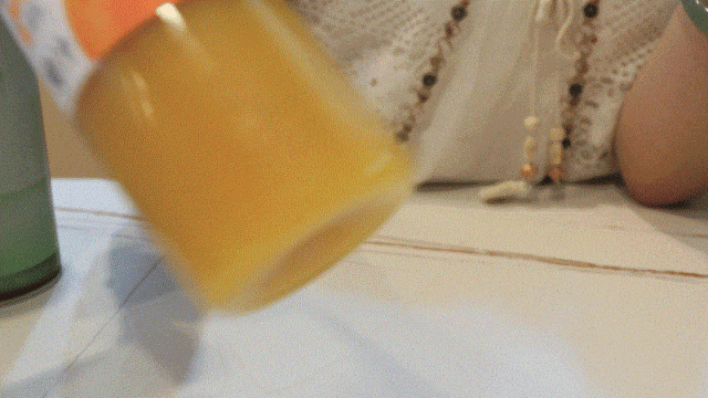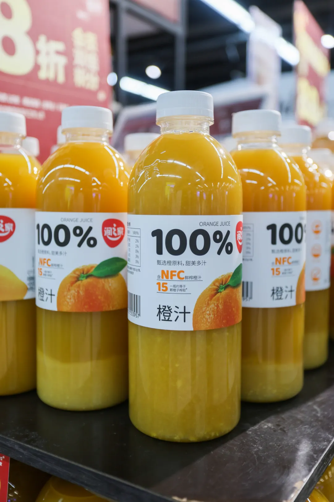 纯纯的阳光味道装进瓶子里啦!倒出来是透亮的橙黄色,100%果汁,每瓶相当于15个橙子榨取,果肉看的见。