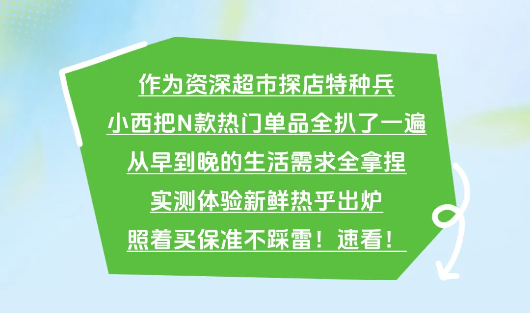 小西作为超市测评小雷达,深知大家最关心的是“哪些值得买”“实测体验如何”。所以这次特意化身“超市质检员”,从成分、口感、性价比到实用度,对N款热门单品进行了全方位拆解,保证测评结果真实可参考,帮你避开踩雷陷阱,精准锁定必买清单!