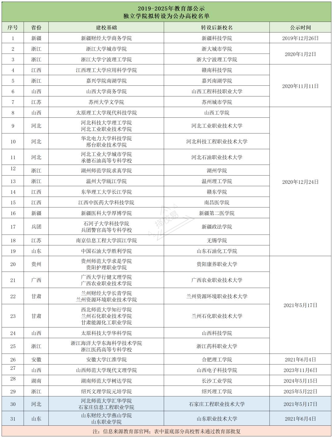 2020年5月,教育部发出通知,要求所有独立学院都需进行转设。近年来多校转设工作持续推进,它们有的以终止办学的形式谢幕,有的以新面貌继续民办本科历程,有的摇身一变搭上了“转为公办”的列车。