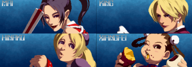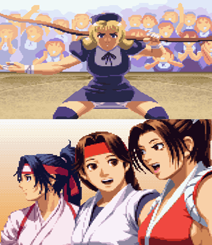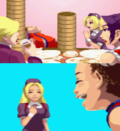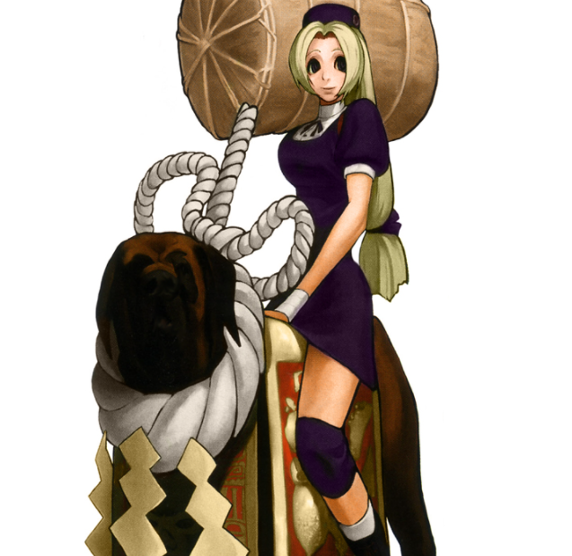 这角色给我的第一印象反差非常大,明明是美少女却用动作非常大开大合的相扑,出场时的那四股动作整个破坏了千金大小姐的形象,使用上因为几乎都是投掷技和近距离打击技,但是因为手不长所以是很难上手的角色,加上必杀技的震撼性华丽性稍微有点少,后来出场率也很低,可惜了这使用相扑的千金大小姐。