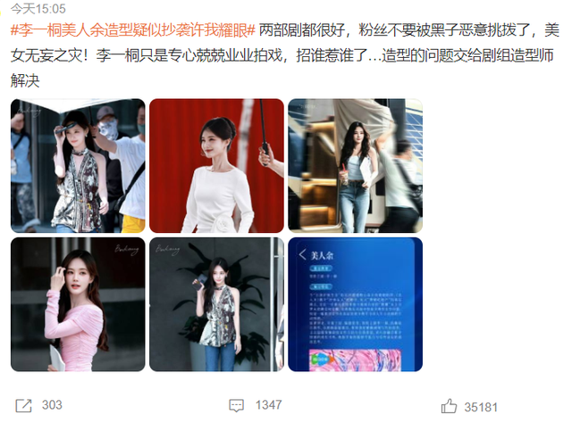 这样的情况出现,很多网友都开始攻击《美人余》,但这并不是李一桐的问题,只不过她在剧中是热度最高的艺人,我们都知道,艺人拍戏的时候,要配合节目组,因为有专门负责妆造的团队,所以李一桐只不过是穿了造型师准备的衣服。