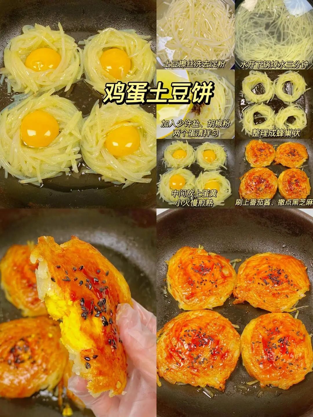 材料:土豆、盐、胡椒粉、蛋清、蛋黄、番茄酱、黑芝麻。