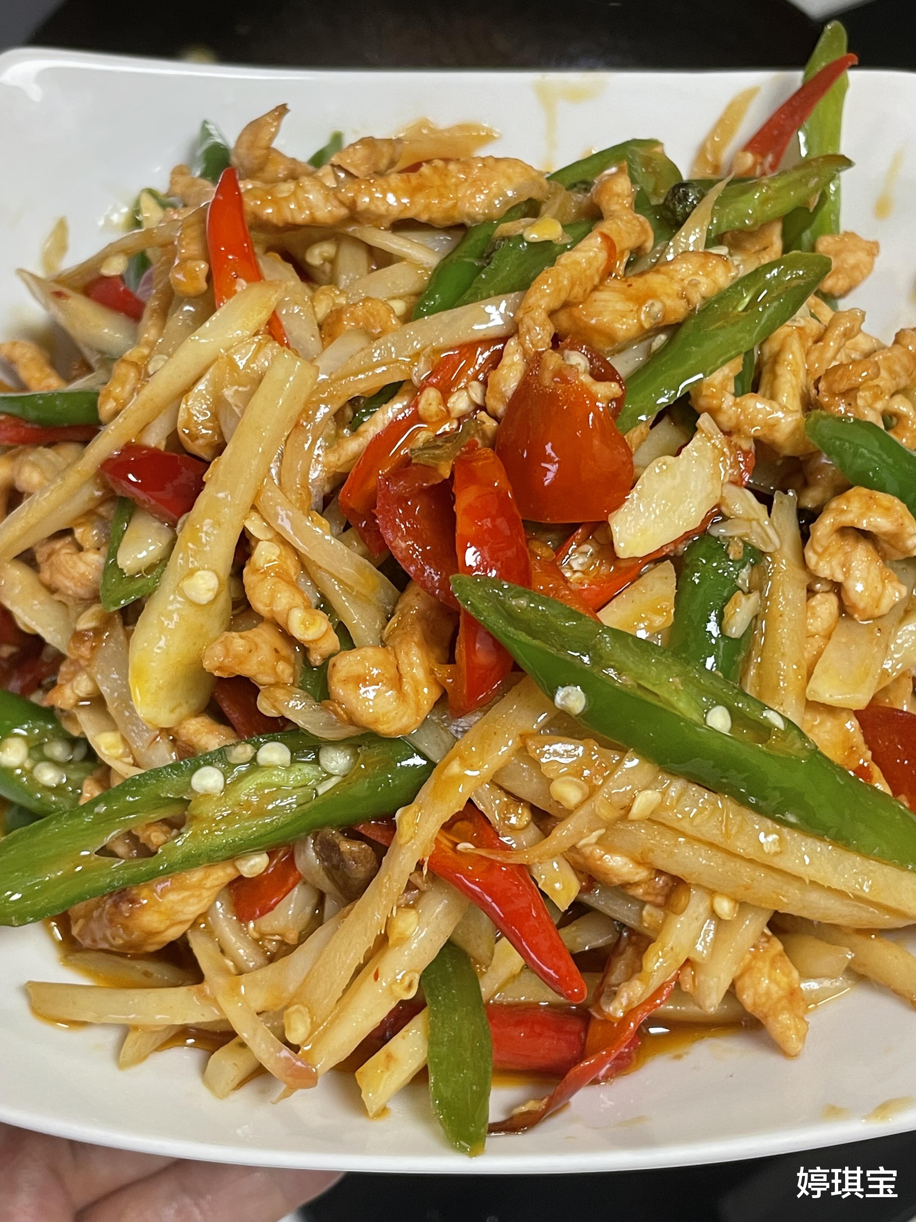 今晚不妨炒盘瘦肉泡椒姜丝吧!让那酸辣鲜香的滋味,唤醒沉闷的味蕾,点燃疲惫的神经。记得要备足米饭,因为这菜实在是——太下饭啦!