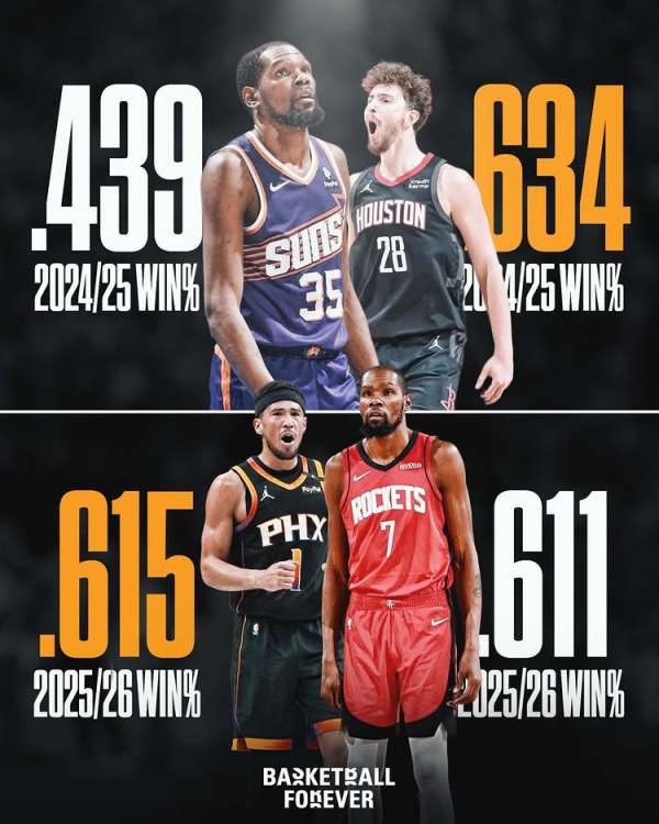事情的起因与火箭队和太阳队的成绩有关。美媒Basketball Forever晒出太阳和火箭的战绩并配文:火箭队在杜兰特交易后不知怎么反而更差了,而太阳队却更好了 太阳近10战8胜2负,已经超越火箭升至西部第六位!