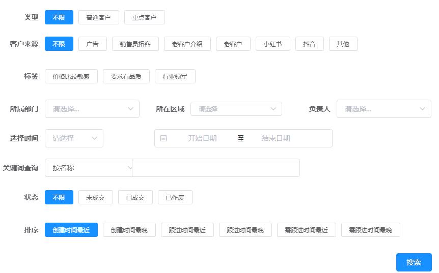 秒级查询:模糊搜索、组合筛选,瞬间锁定目标客户。