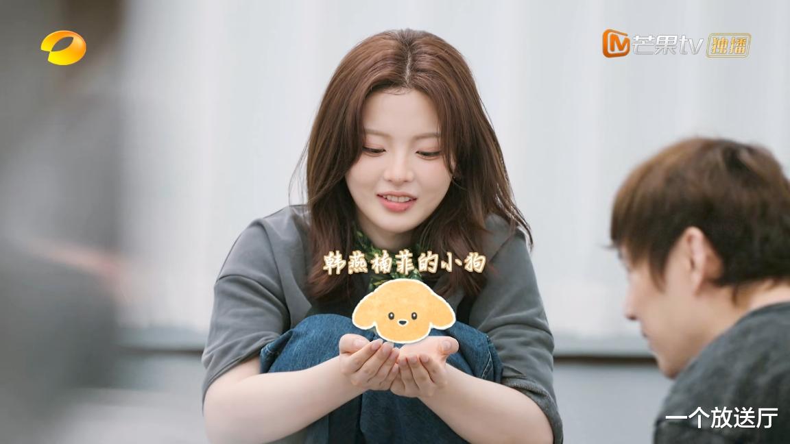郝小禾拿着韩燕楠菲的“小狗”换了何炅的“工作”。