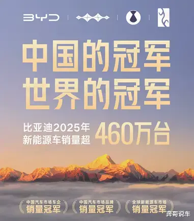 2025 年中国汽车产销突破 3400 万辆,连续多年稳居全球第一。以比亚迪为代表的中国品牌,正从行业引领迈向标准定义。460 万销量背后,是技术、产品与全球化布局的协同发力,未来比亚迪将持续以冠军实力,推动中国汽车产业在全球市场实现更高质量的发展。