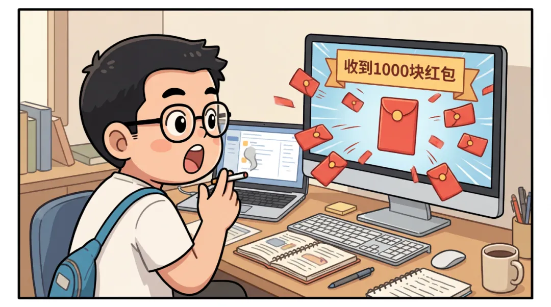今天收到了1000块红包