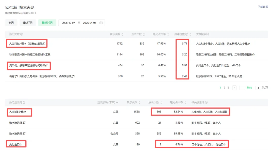 这篇内容在分享的时候,我就有意往搜索方向去靠,不过当时“人生K线”这个事儿可能还没破圈。