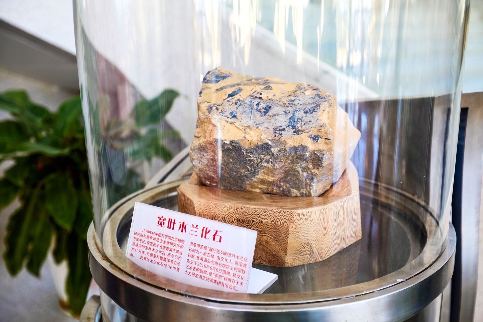 茶树最早起源于第三纪宽叶木兰,馆内的宽叶木兰化石距今已有约3500多万年,是研究茶树起源的重要物证,也是证明茶树最原始产地在滇西南地区的古植物依据。