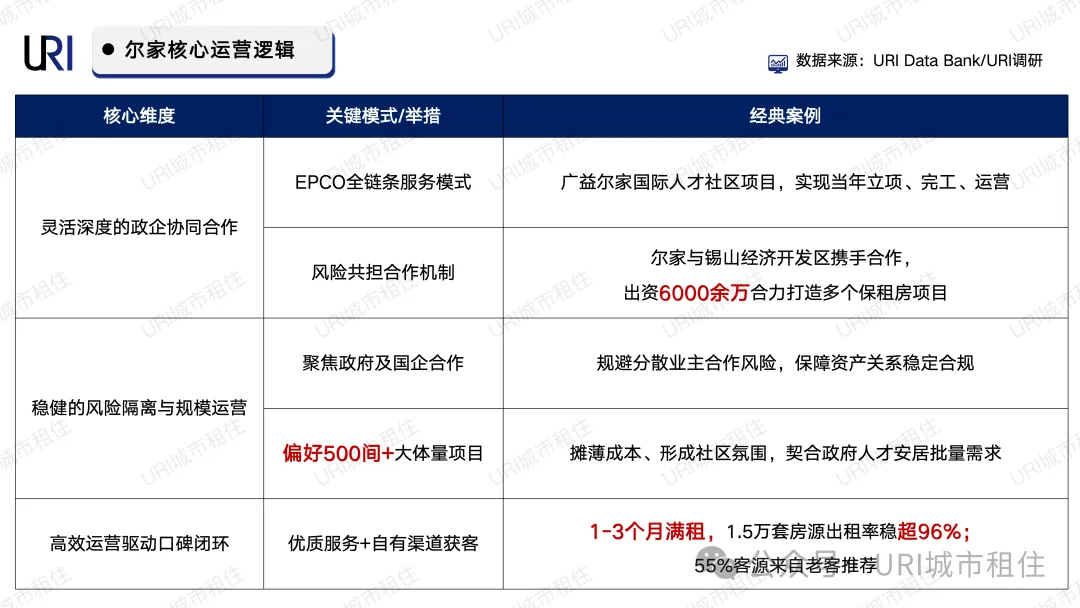 URI研究认为,尔家在住房租赁领域的核心竞争力,在于其成功搭建了国企信用与市场化效率的“价值转换器”与“合作粘合剂”,构建起独具特色的政企共生体系,这也是其实现可持续发展的关键逻辑。