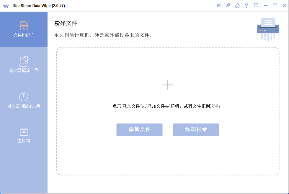 如果您想擦除并覆盖 USB 驱动器上的数据,您需要一个专业的工具,例如iReaShare Data Wipe 。这款软件功能更丰富。除了格式化 USB 驱动器外,它还可以擦除剩余存储空间、删除特定文件或文件夹等。