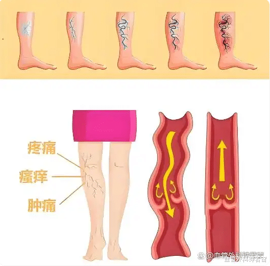 三看症状,正常血管无不适,曲张血管伴腿沉酸胀;