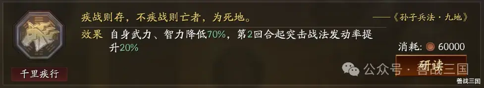 千里疾行:很少武将有这个兵书,但是颜良居然有,还有吕布,有出奇还有千里,硬是把他们往辅助上推
