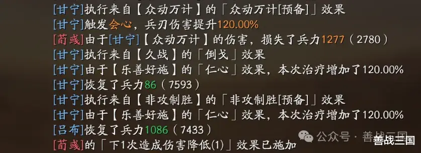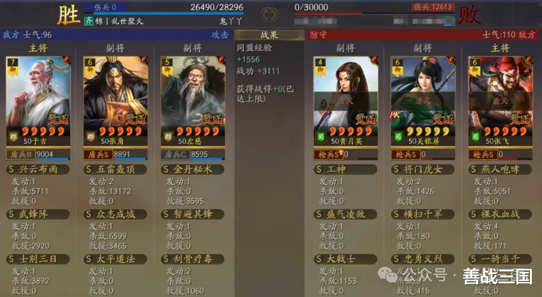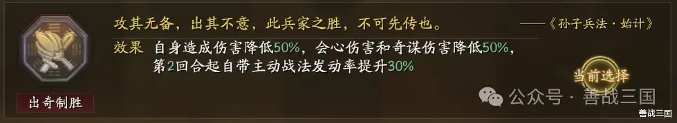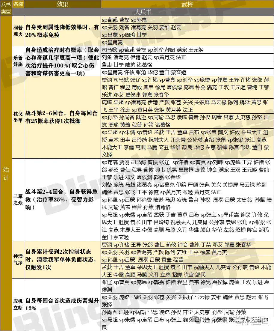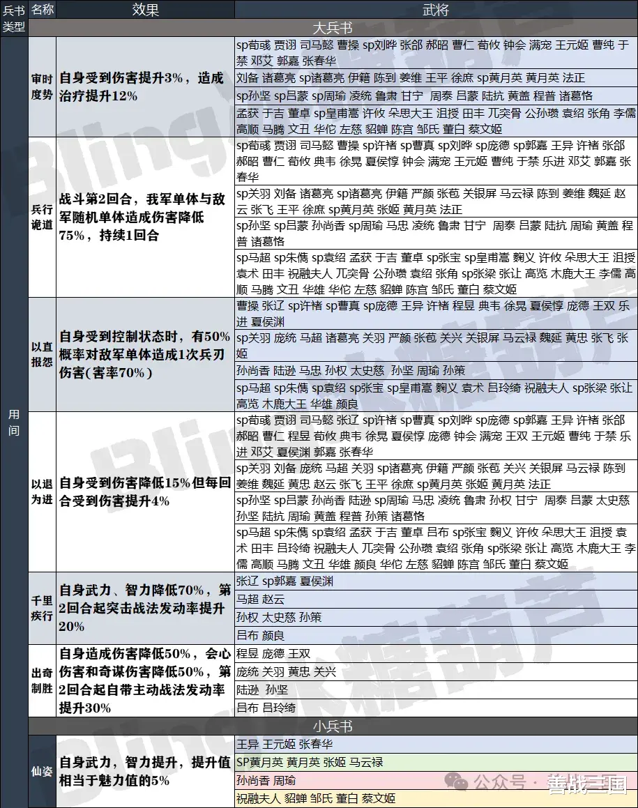 出奇制胜:偏辅助的都没有,偏输出的倒是很多,程昱、陆逊、庞统都有,抬功不唐捐上位,老关羽被新兵书盘活