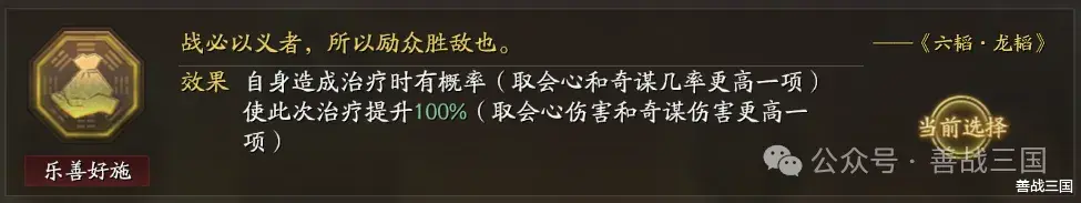 乐善好施:赵云(非攻)、甘宁(非攻锦帆)、司马懿(众志)、张角(太平众志)都有