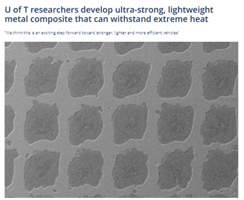 近期,加拿大多伦多大学(University of Toronto,简称U of T)的研究人员设计出一种新型复合材料,该材料不仅非常轻,而且极其坚固。这种材料由多种金属合金和纳米级析出物制成,其结构在微观尺度上模仿了钢筋混凝土。