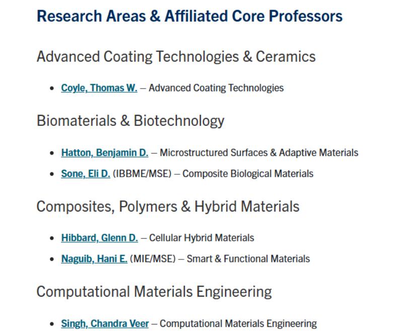 (3)复合材料、聚合物与杂化材料:Hibbard, Glenn D. – 多孔杂化材料;Naguib, Hani E. (MIE/MSE) – 智能与功能材料;