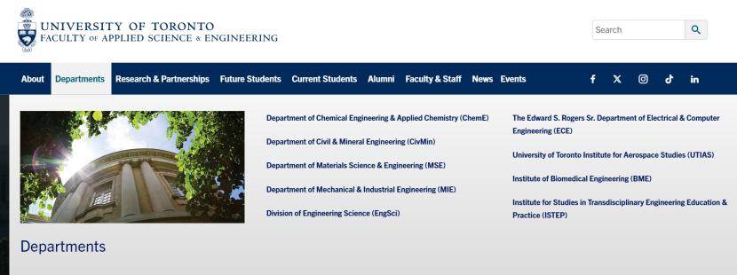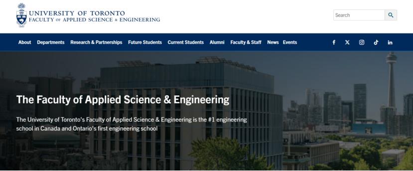 多伦多大学的应用科学与工程学院(Faculty of Applied Science & Engineering)是加拿大排名第一的工程学院,也是安大略省的第一所工程学院。其下设的系、部和研究所,在工程教育与研究创新方面均位居加拿大同领域顶级之列。