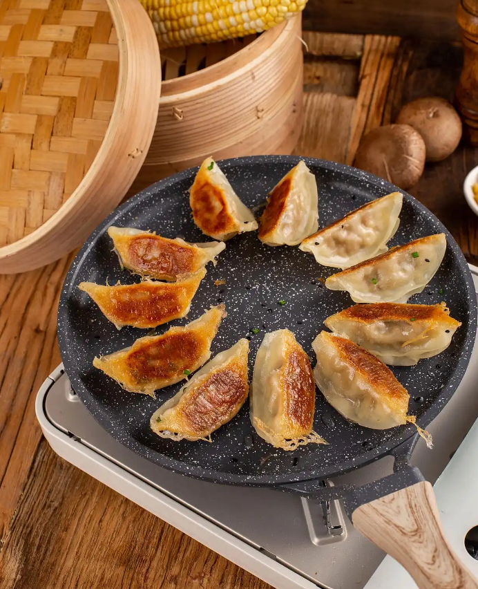煎制过程更是考验功夫,平底锅先刷一层薄油,待油热至六成,把捏好的包子一个个码整齐,包子褶朝下,这样煎出来的底壳更均匀。小火慢煎三分钟,待底部变成浅金黄色,沿着锅边缓缓淋入调好的面水,面水比例是大叔的秘方,不多不少刚好没过包子底部。淋水的瞬间,油花滋滋作响,蒸汽猛地往上窜,带着肉香和葱香扑面而来,让人忍不住咽口水。