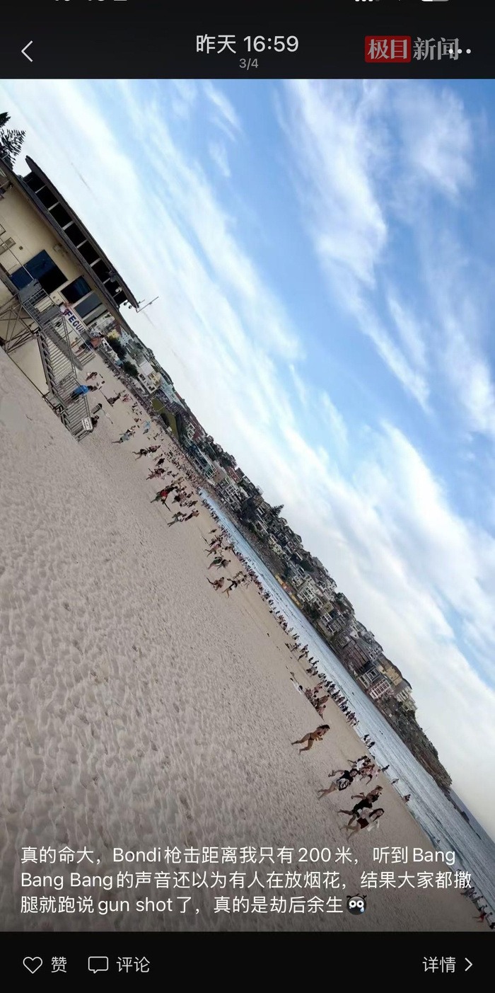 中国留学生现场亲历悉尼海滩枪击事件:枪击持续10多分钟,逃跑时腿都跑软了,夺枪大叔是英雄