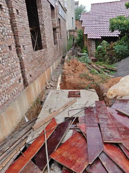 2022年,吕某华的“圈地动作”进一步升级:9月,他将此前堆砌的石头挖出,用于砌筑水塘边35米长的堡坎,还擅自移植吕先生家的果树,企图将前方35米区域全部纳入自家宅基地范围;同时在后檐继续扩占土地至23米,修建围墙、堡坎和引水水沟,直接将雨水排向吕先生家的稻谷加工厂,导致厂房常年受积水困扰,由于积水的浸泡已经影响到了加工厂的房屋结构安全。