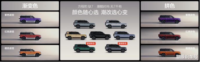 为了让广大用户选得尽兴,钛7直接一步到位,带来了7款外观颜色、3款内饰颜色,同步在官方商城上架了6款潮改方案,可满足不同用户的审美偏好。