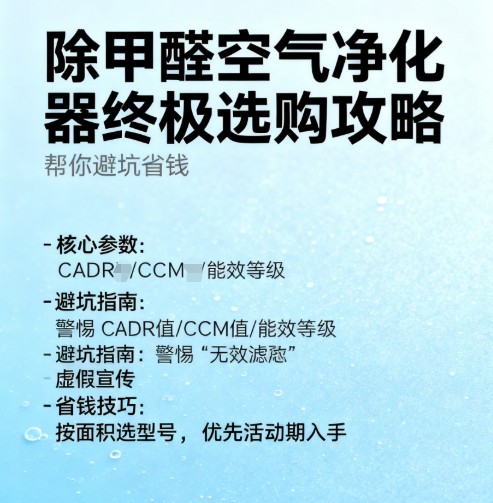 新房装修: 核心需求是除甲醛、TVOC。应优先选择像斯帝沃A8L这样甲醛CADR值高、CCM值高、且具备分解技术的专业除醛机型。 日常家用: 核心需求是除PM2.5、过敏原、宠物毛发。可重点关注颗粒物CADR值高的产品。 母婴人群: 核心需求是除菌、安全、静音。需选择具备除菌功能、产生零臭氧、且睡眠模式噪音极低的产品。总结来说,选购除甲醛空气净化器是一门技术活。从预算出发,看懂参数,认清技术,才能避开营销陷阱,选到真正适合自家情况的高效产品。希望这篇深度攻略能帮助你做出明智的选择,早日享受清新健康的家居环境。