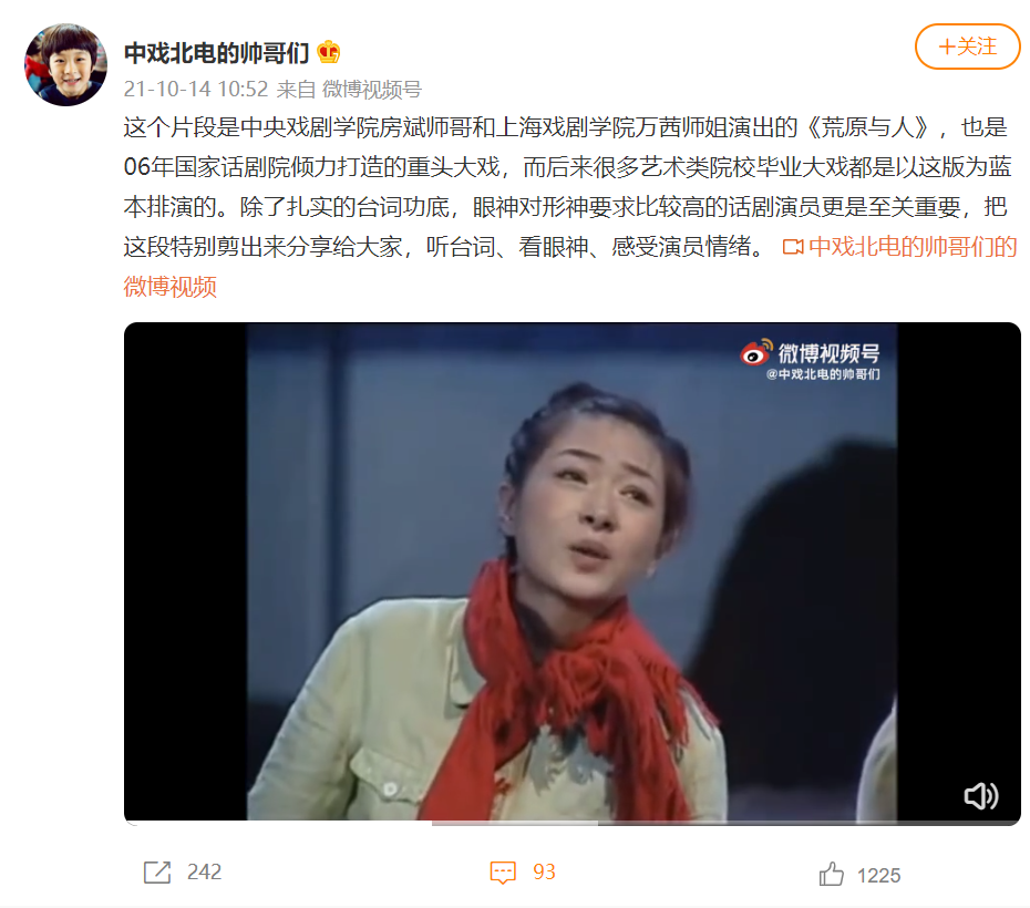 早在2006年,由万茜主演的话剧《荒原与人》就曾获得文化部颁发的“话剧百年”全国展演金奖。其中出色的台词演绎、肢体神态表演,也成为了很多话剧院学生模仿学习的蓝本。