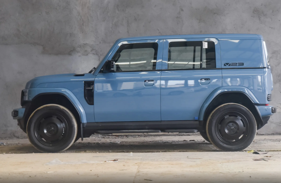 车身侧面加入大量横平竖直的线条,再次强化自身越野身份,隐藏式门把手的开启方式有些特别,需要先向里推进后再向外拉出,对于第一次开车门的消费者来说确实不知从何下手。轮眉造型略显单薄,大饼状轮圈是比较独特的设计元素,车侧配备固定脚踏板,上下车的时候更方便。该车的接近角达到3度,最小离地间隙达到了210mm,具备一定轻越野的能力,尤其是在遇到一些路况比较差的路段时更能彰显出自身优势。